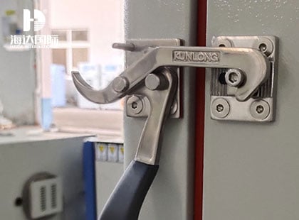 10、測試部分:不銹鋼材質(zhì),箱門為兩層5mm厚的鋼化玻璃,可觀察被測試試樣的狀態(tài),后側(cè)設(shè)計有排風(fēng)扇,并預(yù)留外接排風(fēng)接口。